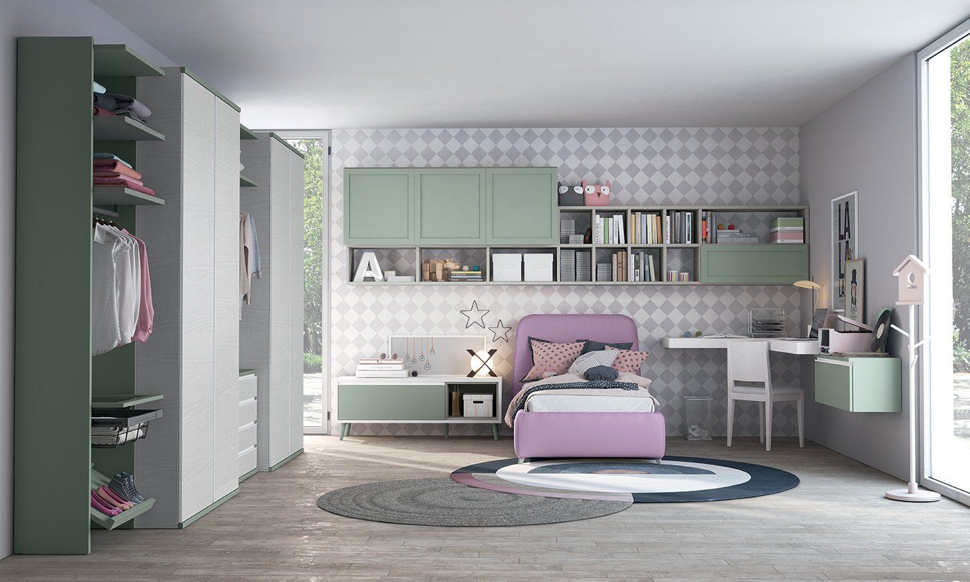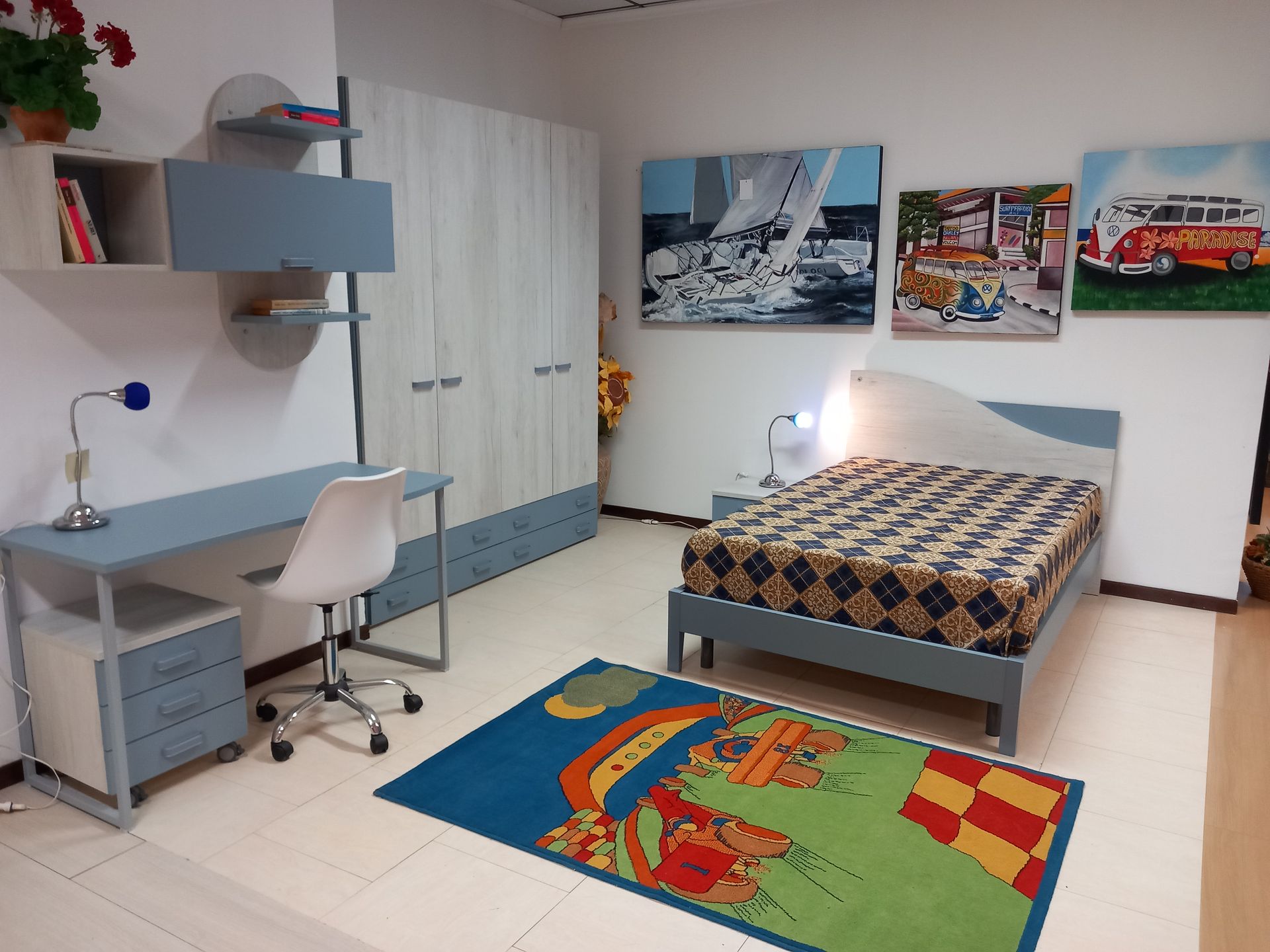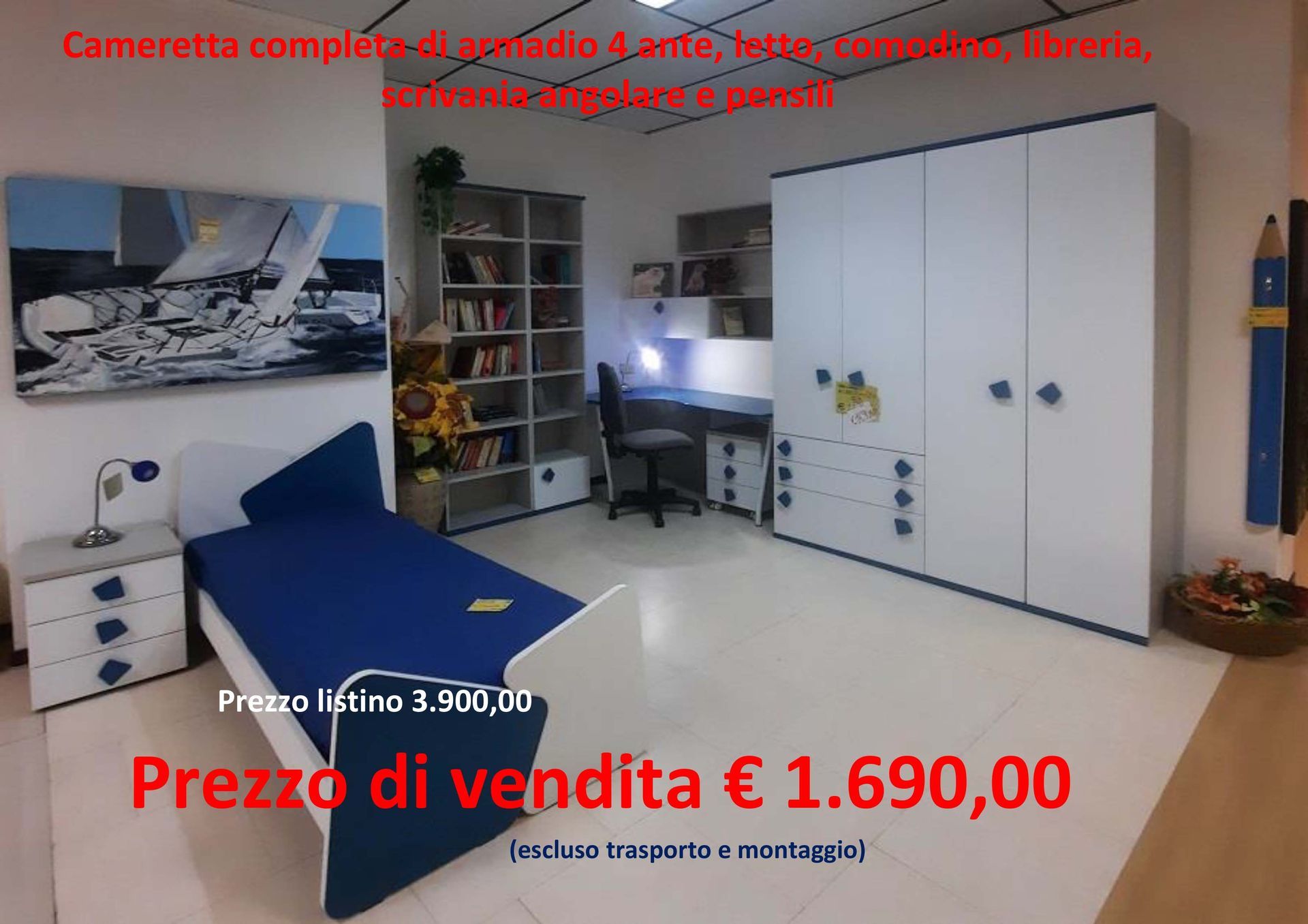 Cameretta completa di armadio 2 ante scorrevoli, letto 1 piazza e mezza, libreria con penisola scrittoio, comodino e pensili da € 4.460,00