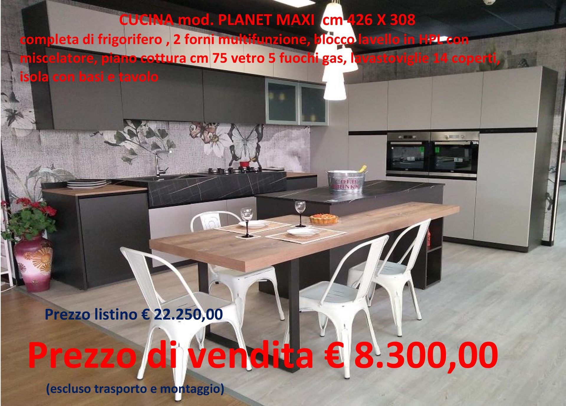 Compresa di forno, piano cottura, 5 fuochi gas, frigorifero, lavastovoviglie, tavolo allungabile