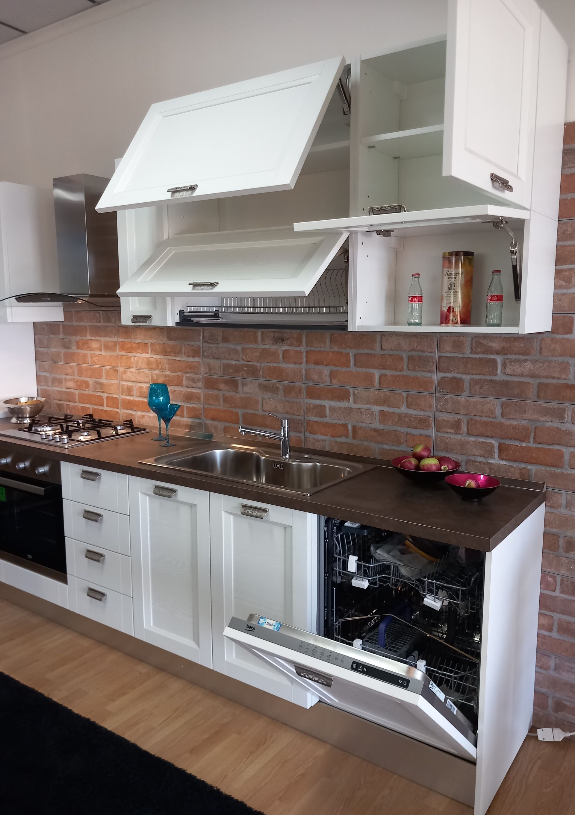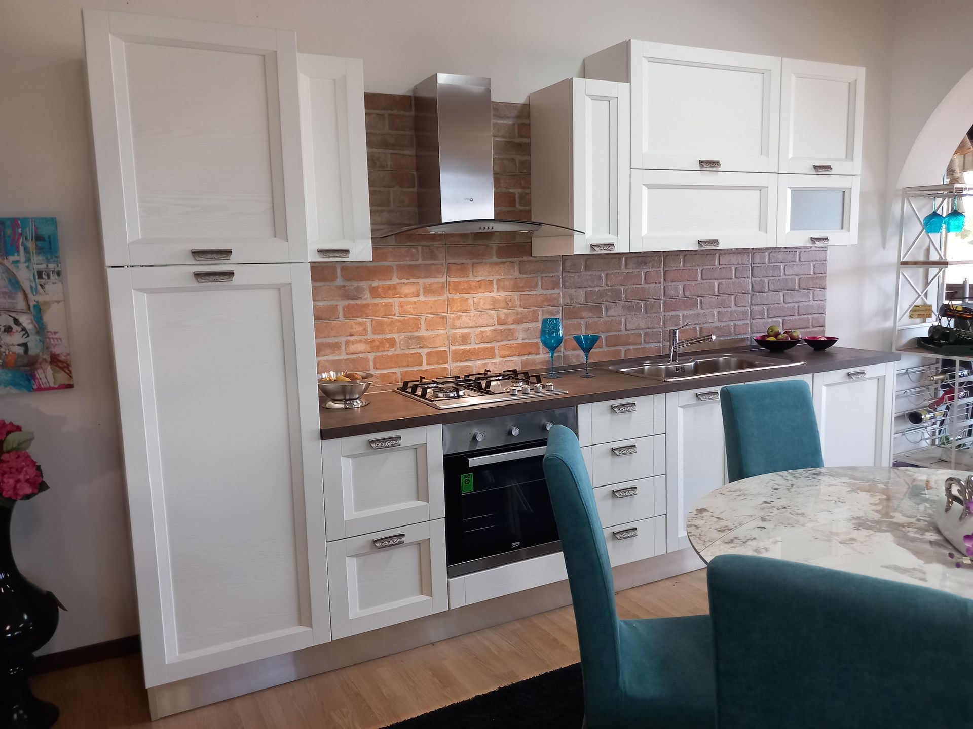Cucina completa di elettrodomestici, ante in frassino bianco spessore 24 mm