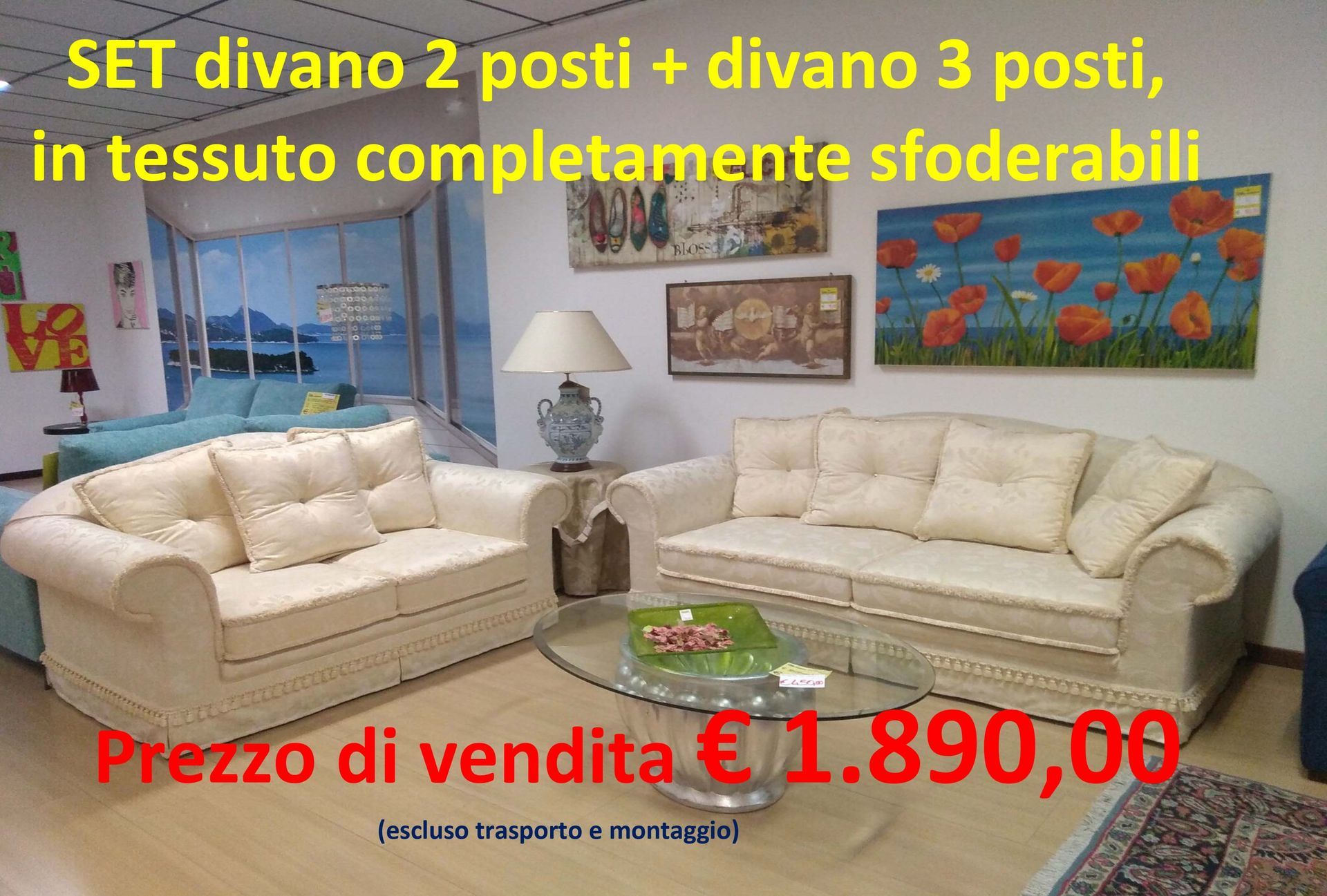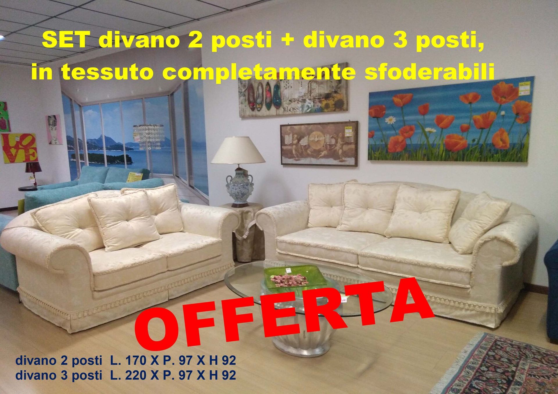 Set divano 2 posti più divano 3 posti. tessuto sfoderabile