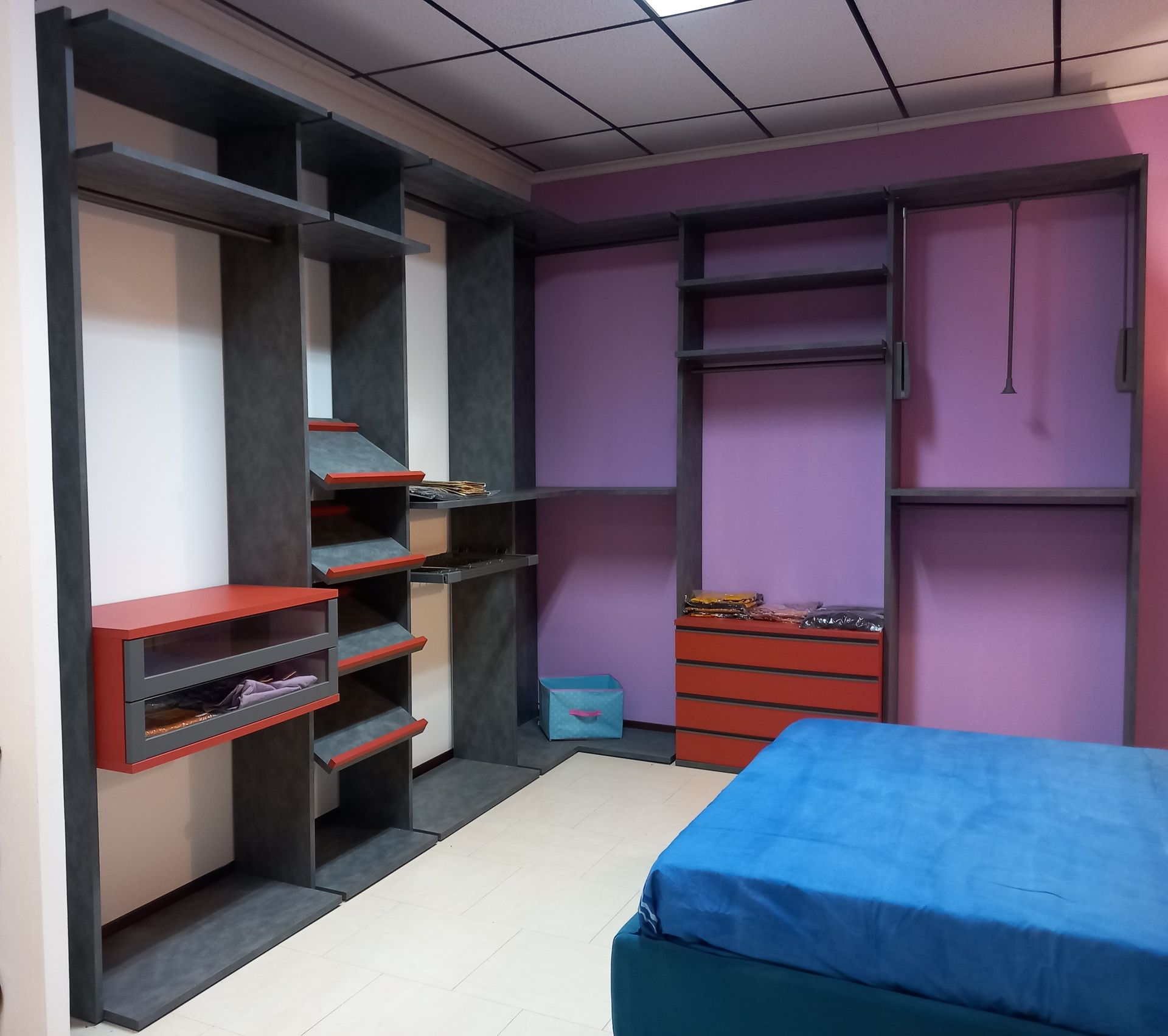 Cabina armadio componibile completa di cassettiere, ripiani porta scarpe, porta pantaloni