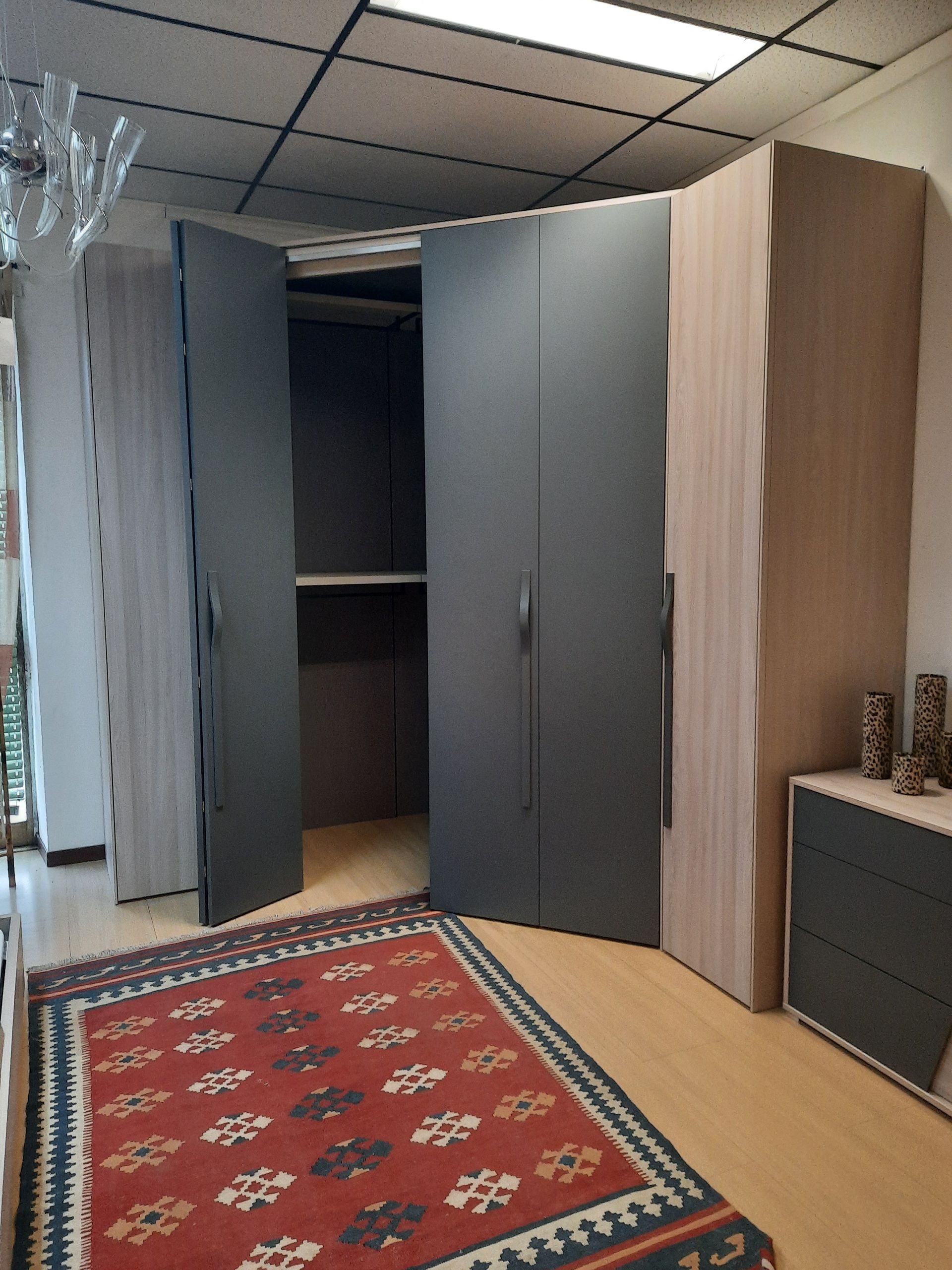 Camera da letto completa di armadio angolare, comodini, comò, settimino e specchio, finitura noce e canapa da € 4.535,00