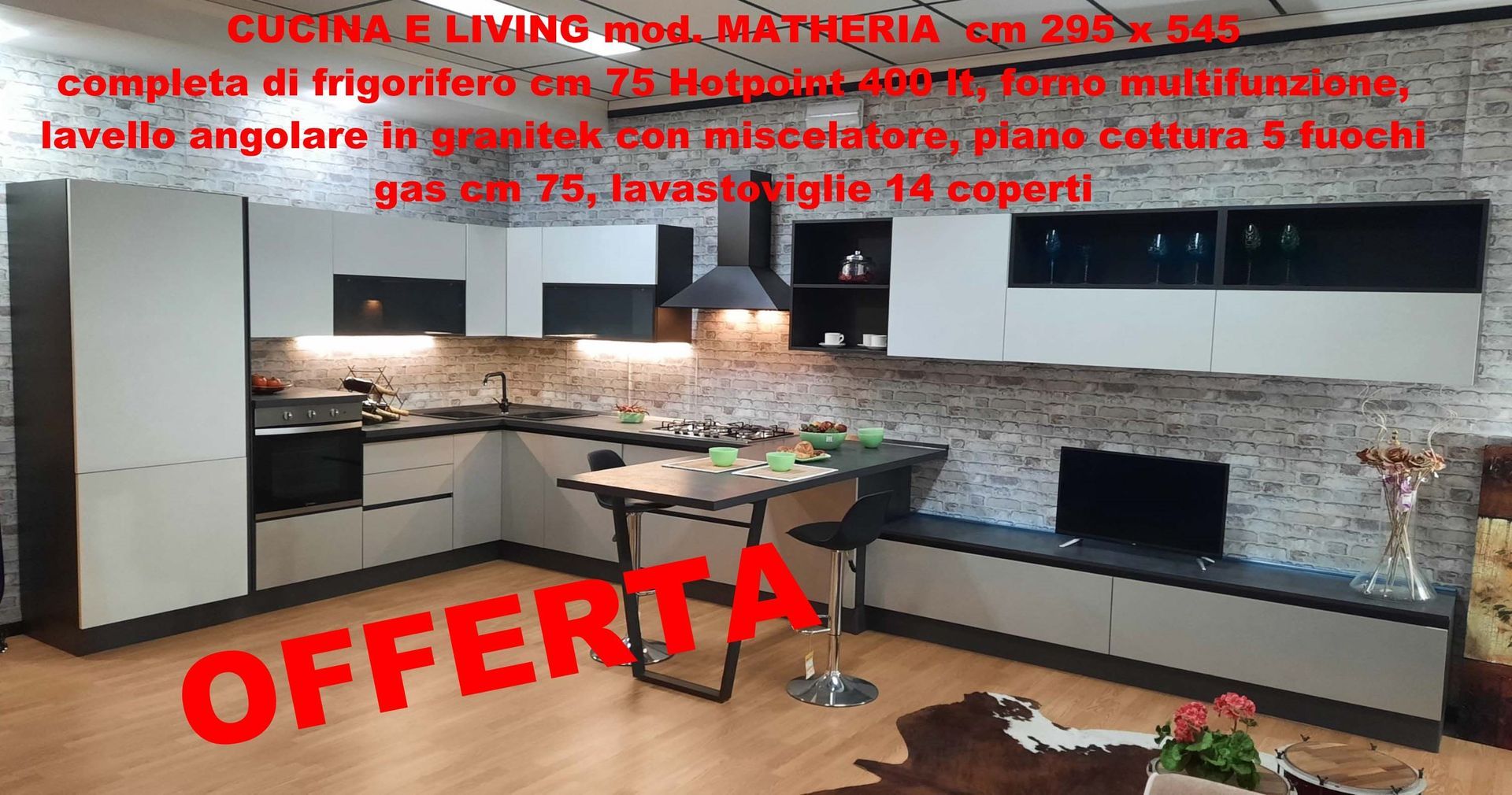 Cucina & Living, forno, piano cottura, lavello in granitek con miscelatore, piano cottura 5 gas 75 cm, lavastoviglie 14 coperti